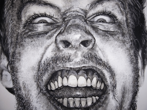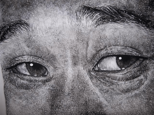 1. How did u manage to draw it without smudging the charcoal.? All the dots appeared to be very clean do u draw standing up?