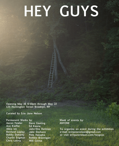 HEY GUYS Photos Dave Geeting took of the HEY GUYS exhibition, currently on in Brooklyn. Share on Pinterest (Opens in new window) Pinterest Share on X (Opens in new window) X Share on Facebook (Opens in new window) Facebook Related