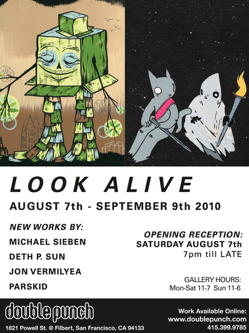 Look Alive, a new show coming up at the Double Punch galley in San Francisco, featuring new work from Michael Sieben, Deth P. Sun, Jon Vermilyea and Parskid.
