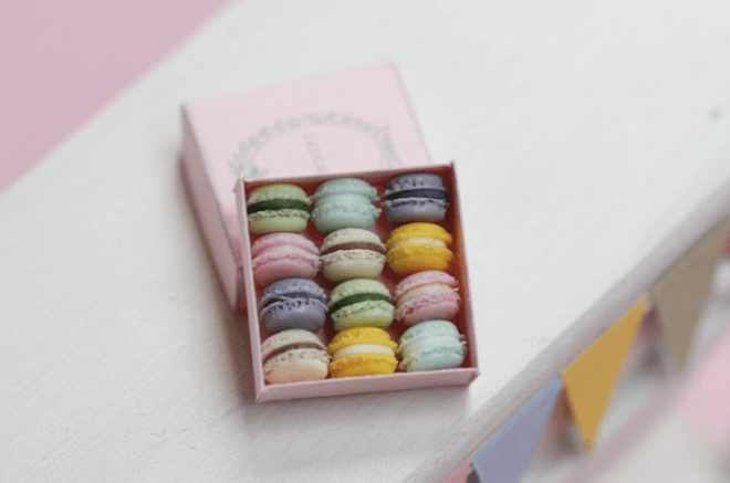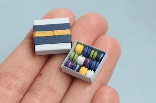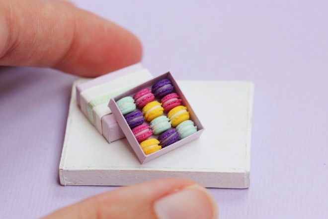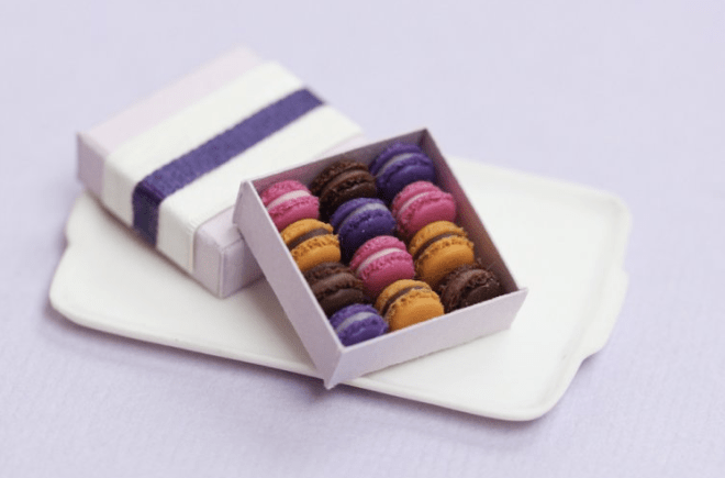 France-based artist Stephanie Kilgast uses fimo clay to create assortments of miniature macaroons. What results is an almost edible looking treat. Kilgast sells these tiny creations in her shop for €30 per box.