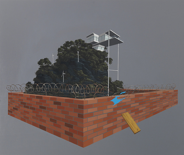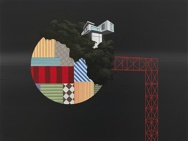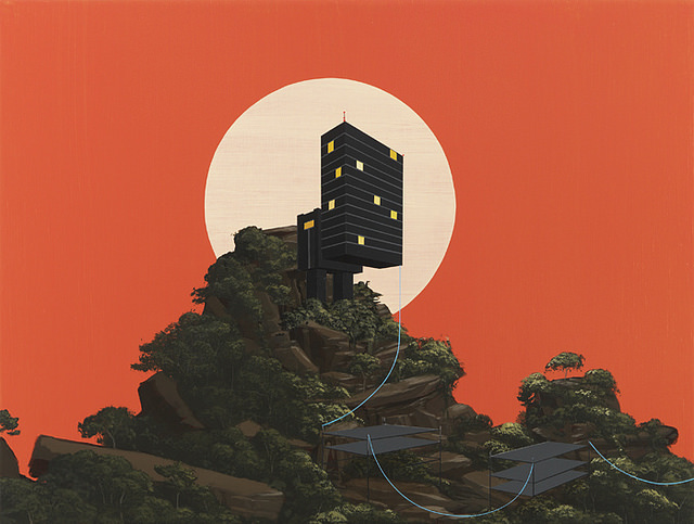 From the artist, Dean Monogenis: “Besides their practical usage, I had never regarded buildings or architecture as more than symbols or monuments to someone else’s memory or beliefs. This changed after witnessing the fall of the world trade center. Subsequent to that day, I began to see buildings organically in terms of birth and death.”