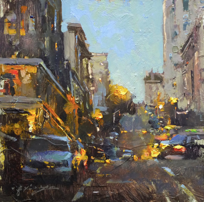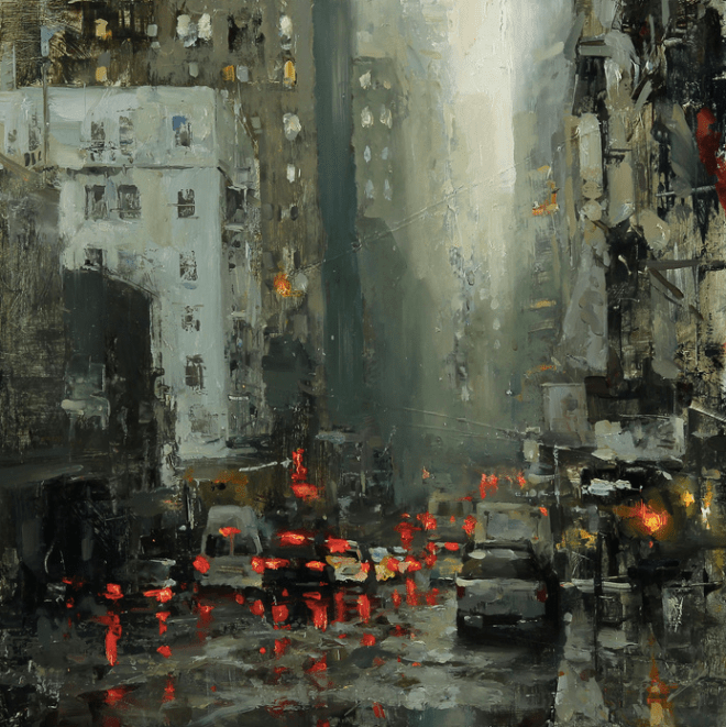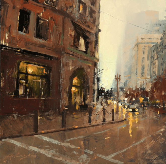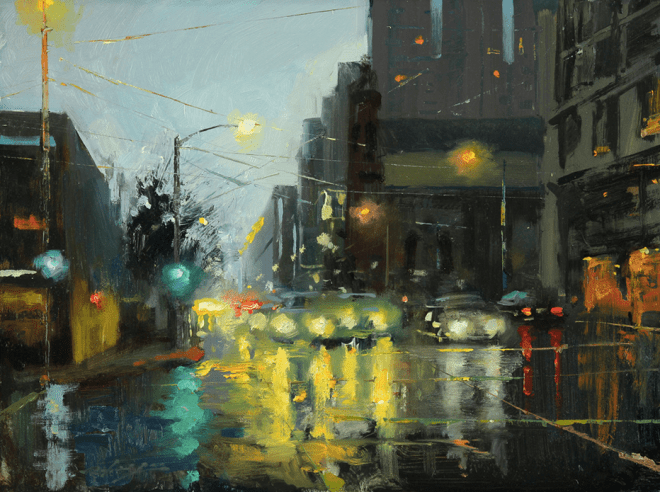 I love the reflections you captured in the wet streets and the moodiness.