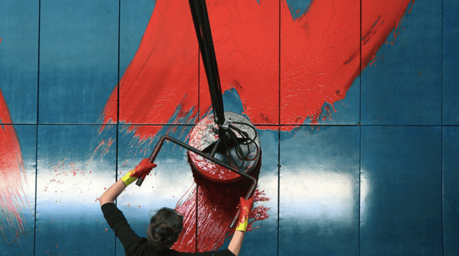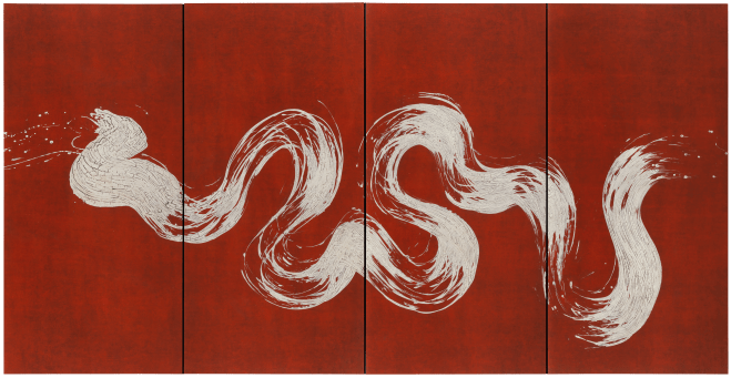 Is the painting for sale? I find a painting with red brush stroke is lovely and would like to use this image to print on the area rug for my client in Japan.